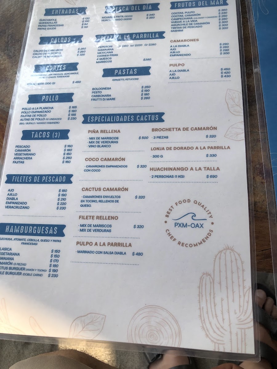 Welcome to Cactus Restaurant & Bar, a delightful culinary gem nestled in the heart of Puerto Escondido, Mexico. Located on Calle del Morro, this vibrant eatery specializes in an unforgettable menu featuring artisanal pizzas, mouthwatering grilled meats, and authentic tacos de pescado. Each dish reflects the owners' passion for quality, making every bite a true delight.